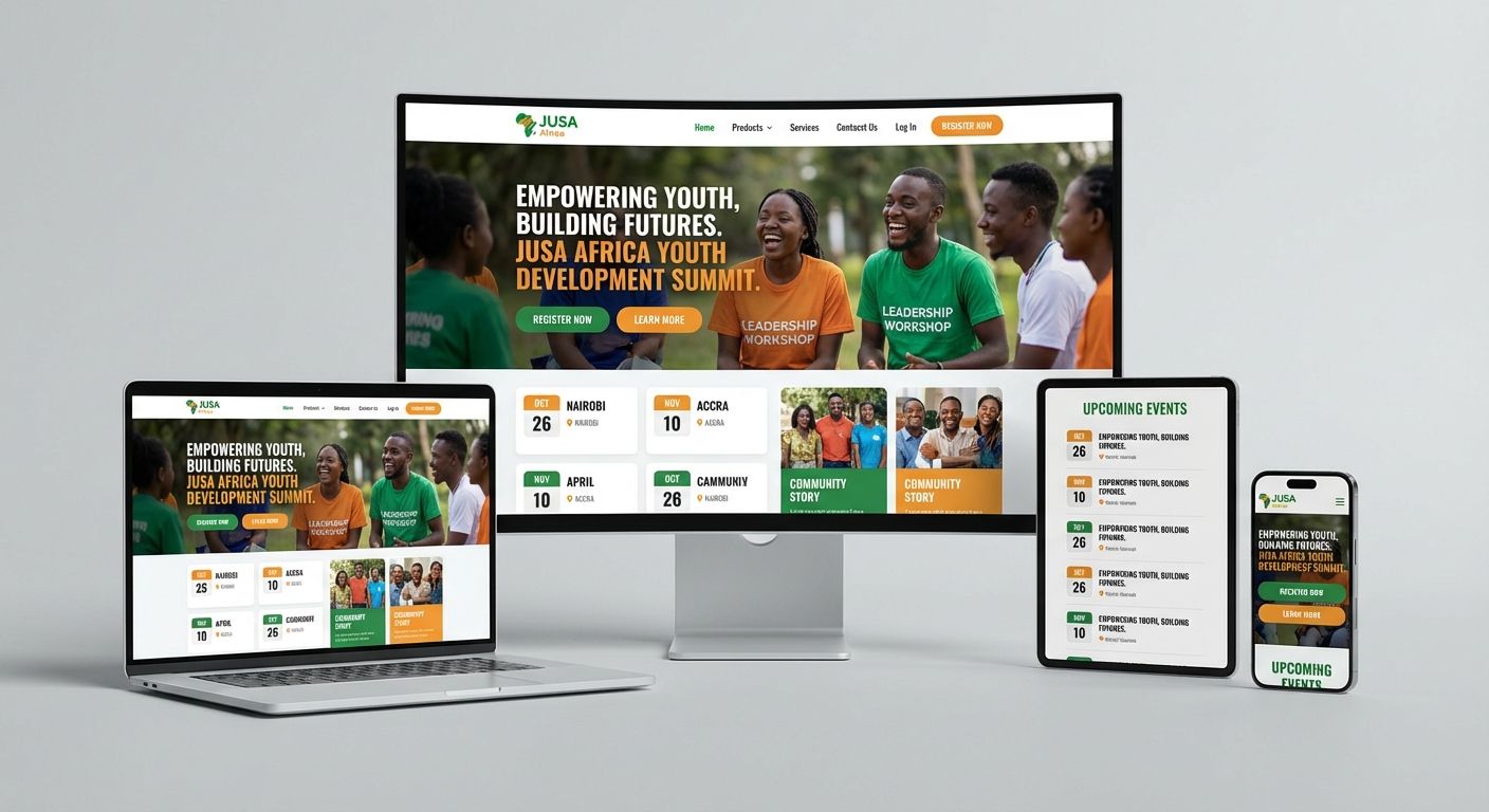 En Afrique subsaharienne, la JUSA (Jeunesse Unie et Solidaire d'Afrique) porte une vision de paix, solidarite et prosperite via de nombreux programmes, evenements et initiatives communautaires. Le besoin etait de structurer cet ecosysteme dans une plateforme lisible et mobilisatrice.