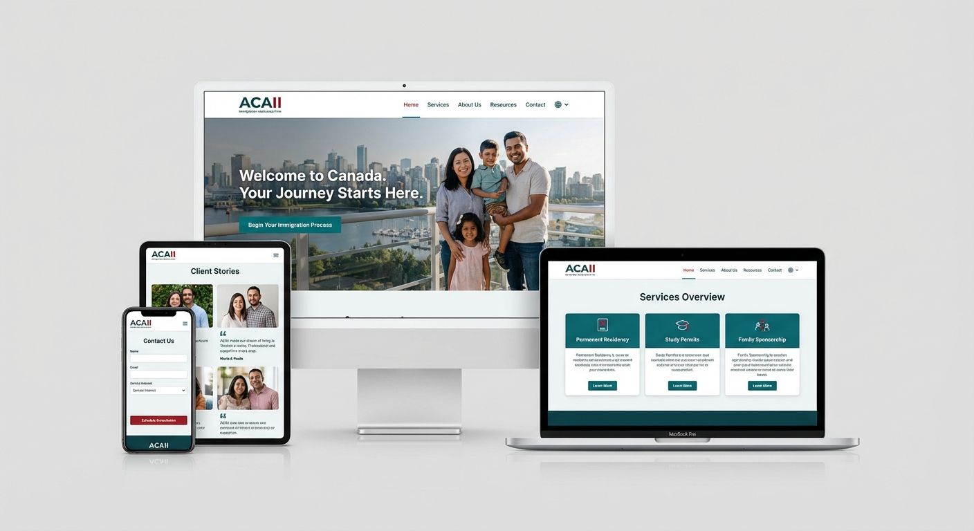Entre le Canada et l'Afrique, l'Association Canadienne d'Aide a l'Immigration et a l'Integration (ACAII Canada) accompagne candidats, familles et entreprises a travers un parcours migratoire complet. Le besoin etait de centraliser une offre dense en un parcours clair, humain et rassurant.